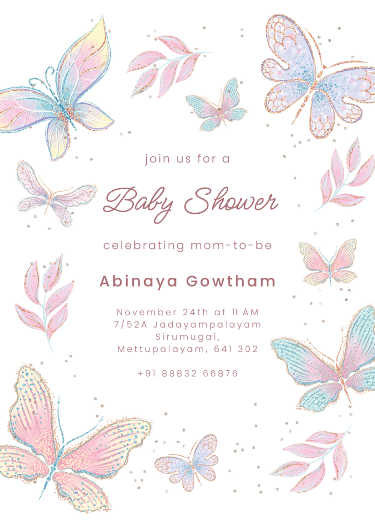 Baby Shower Get Ready to join us on our Big Day ! Days Hours Minutes Seconds 24 November 2023 (Friday) Baby Shower 11.00AM-12.00Pm Get ready to celebrate the upcoming arrival of joy, giggles, and tiny toes! We’re thrilled to invite you to Abinaya’s Baby Shower. It’s a day filled with love, laughter, and anticipation as we shower Abinaya with warmth and support. Venue Home Mettupalayam, Tamil Nadu. Gowtham FOR ANY NEEDS CONTACT +91-8883266876 Some of our Happy Moments Gift us with your Blessings and Presence!